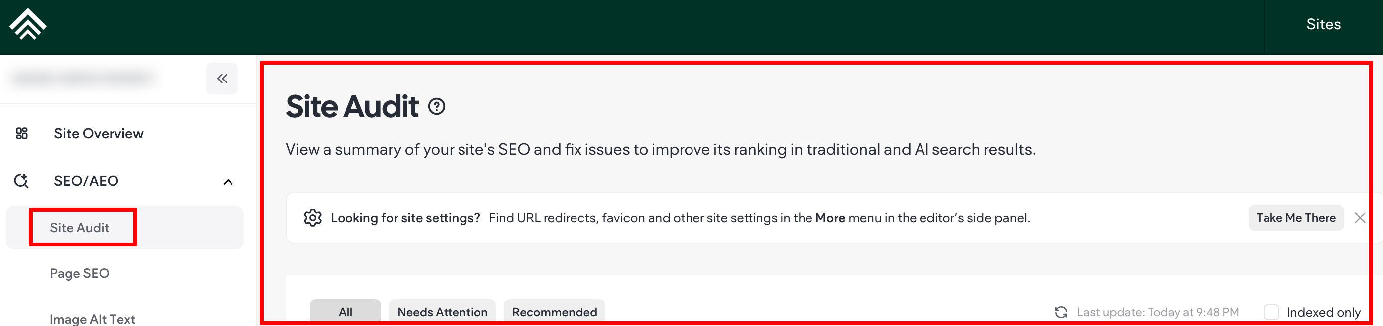 View a summary of your site's SEO and fix issues to improve its ranking in traditional and AI search results.
