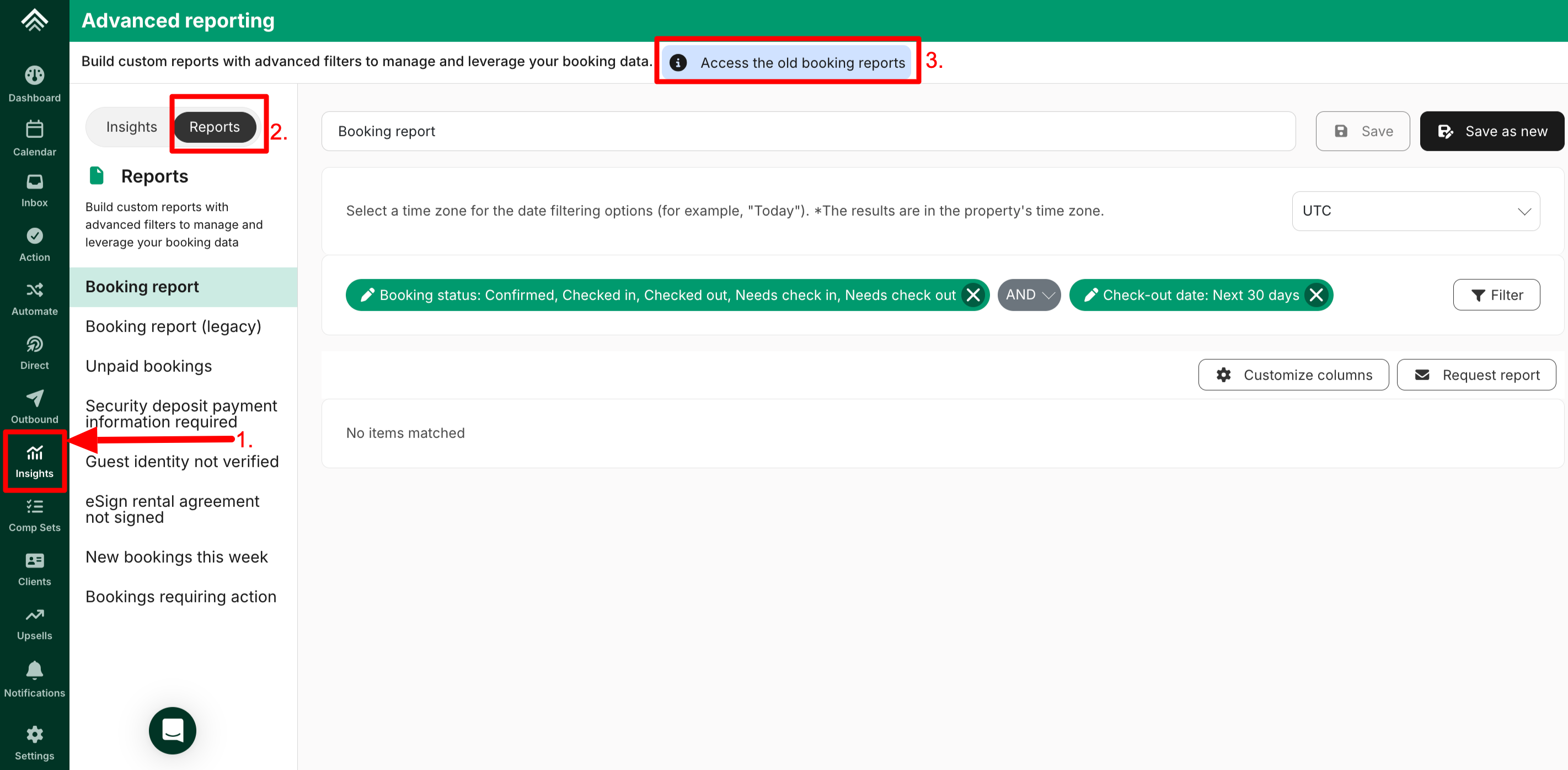 - Select 'Access the old booking reports option