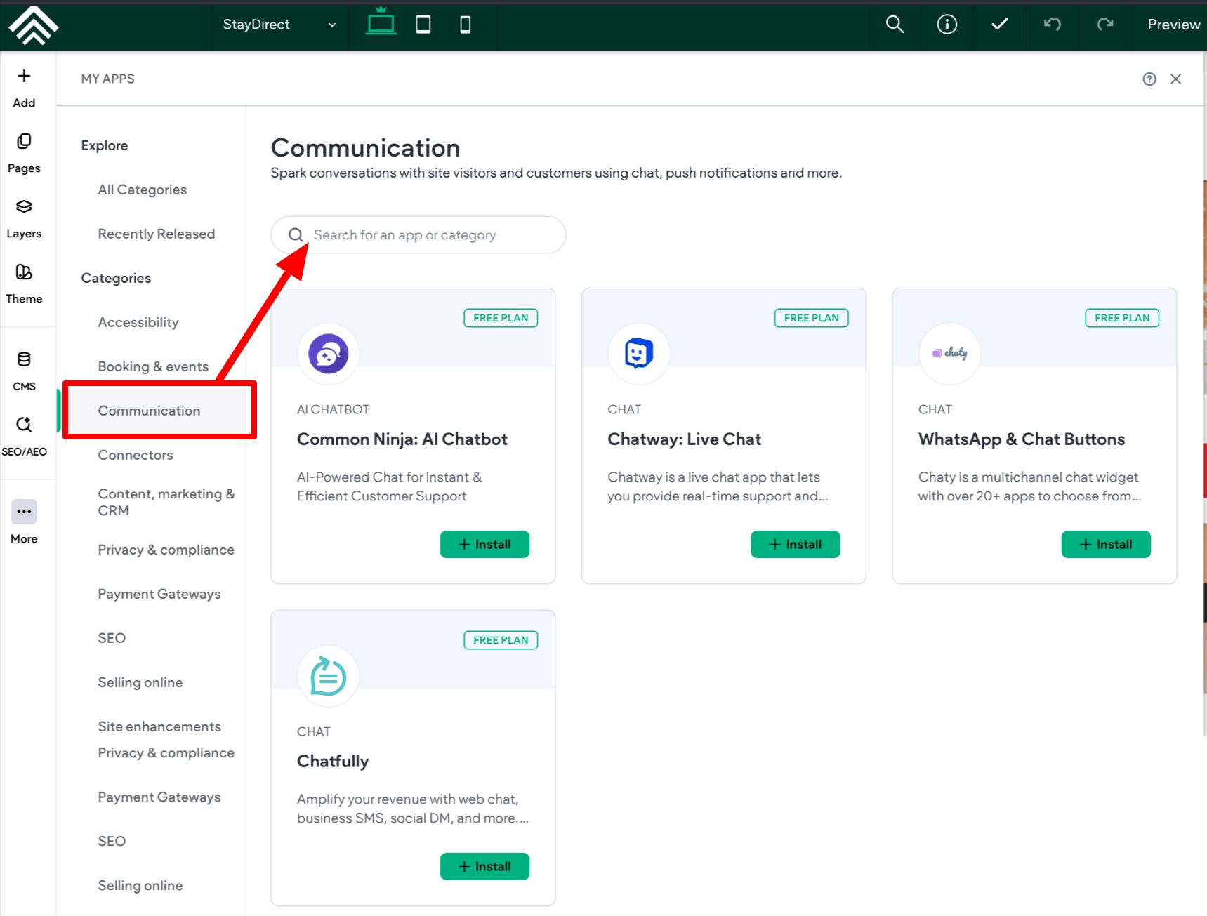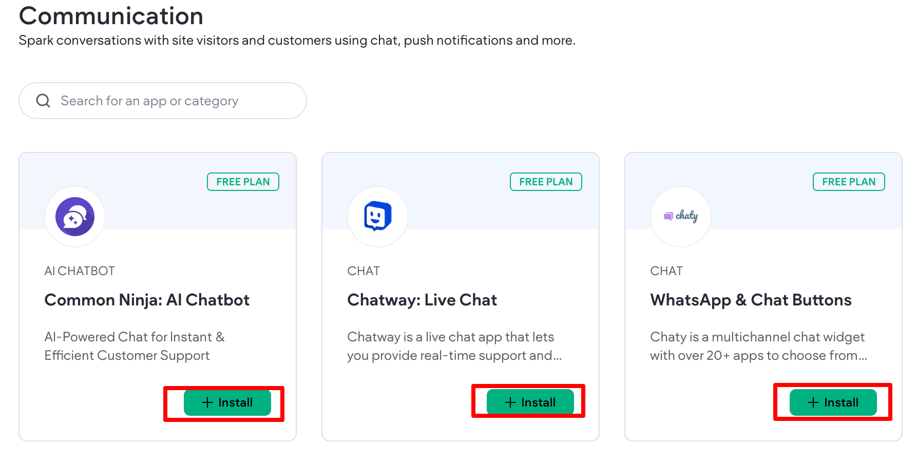 - You can also search a specific chat app by entering its name in the Search for an app or category bar