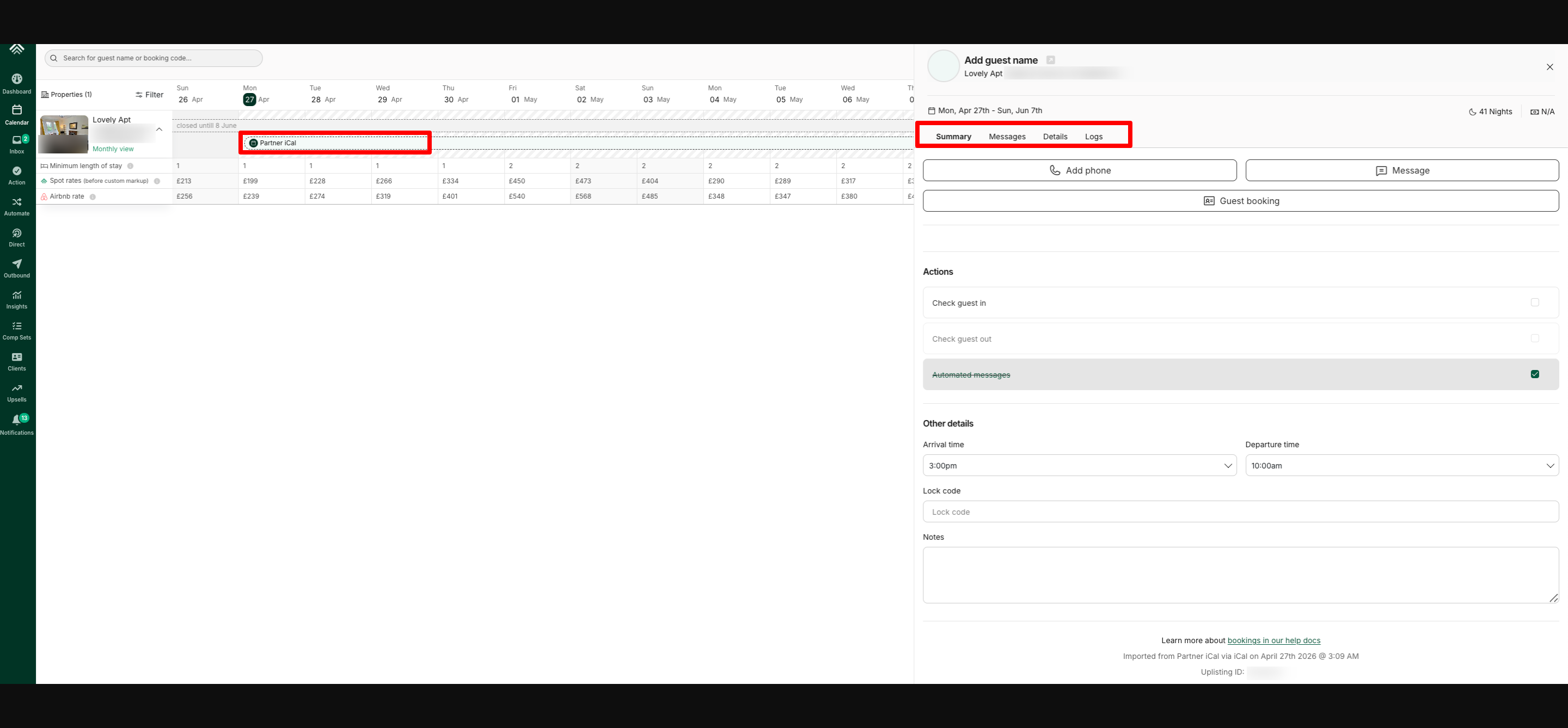 (Here’s a sample screenshot showing the available tabs for a Partner iCal booking in Uplisting. )