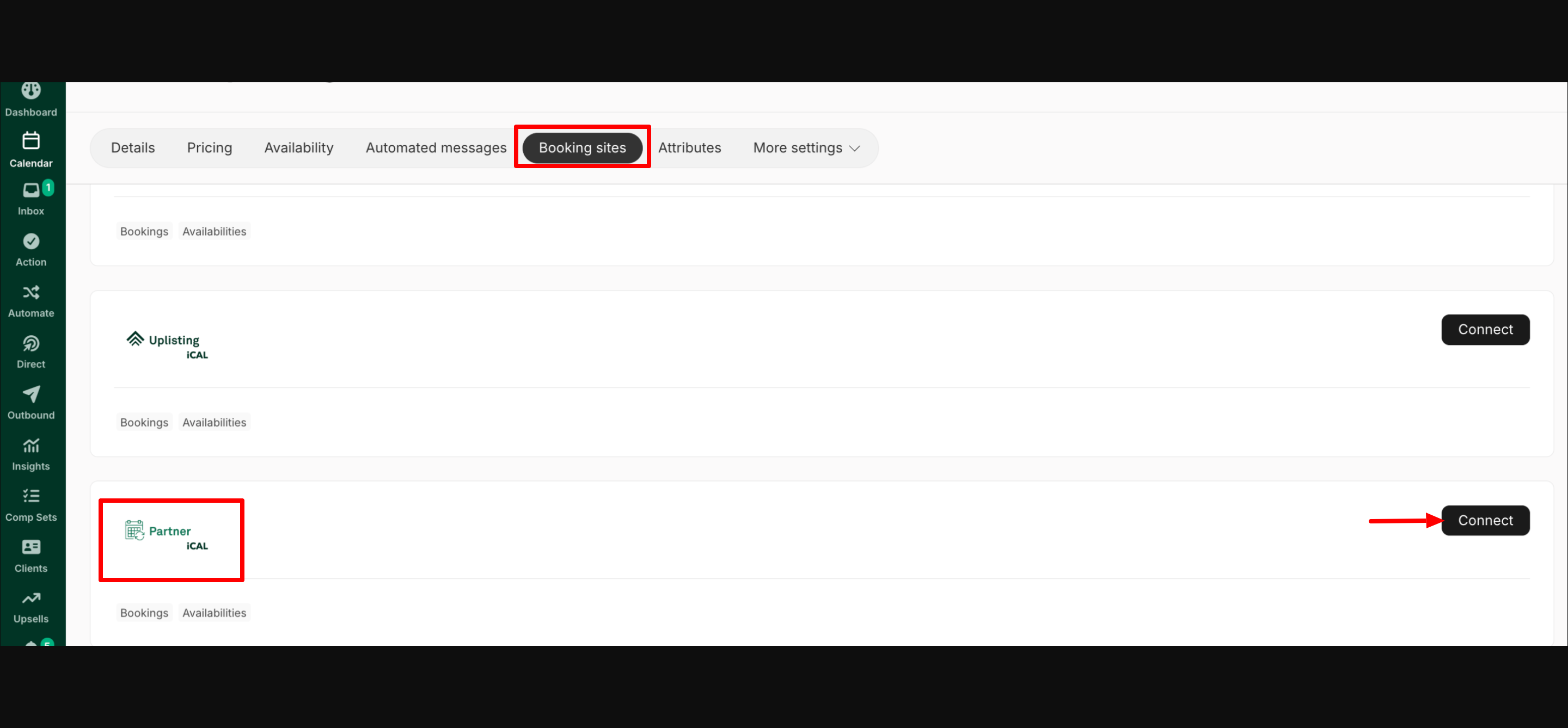 - The external platform supports iCal connections, but it is not listed in Uplisting under the listing's **Booking Sites **tab