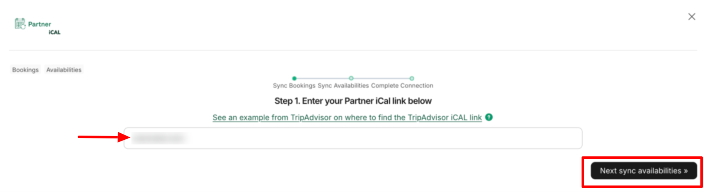 - Paste the Partner iCal link copied from the external platform into the field shown in the screenshot below