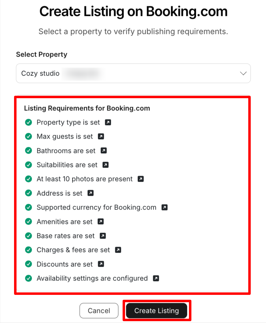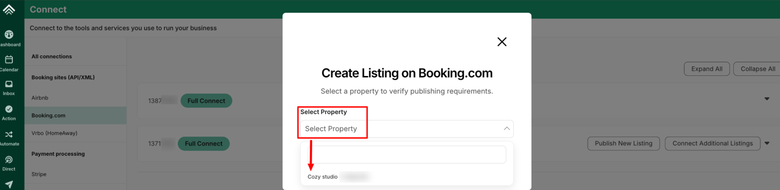 - Select the listing you want to connect to Booking.com