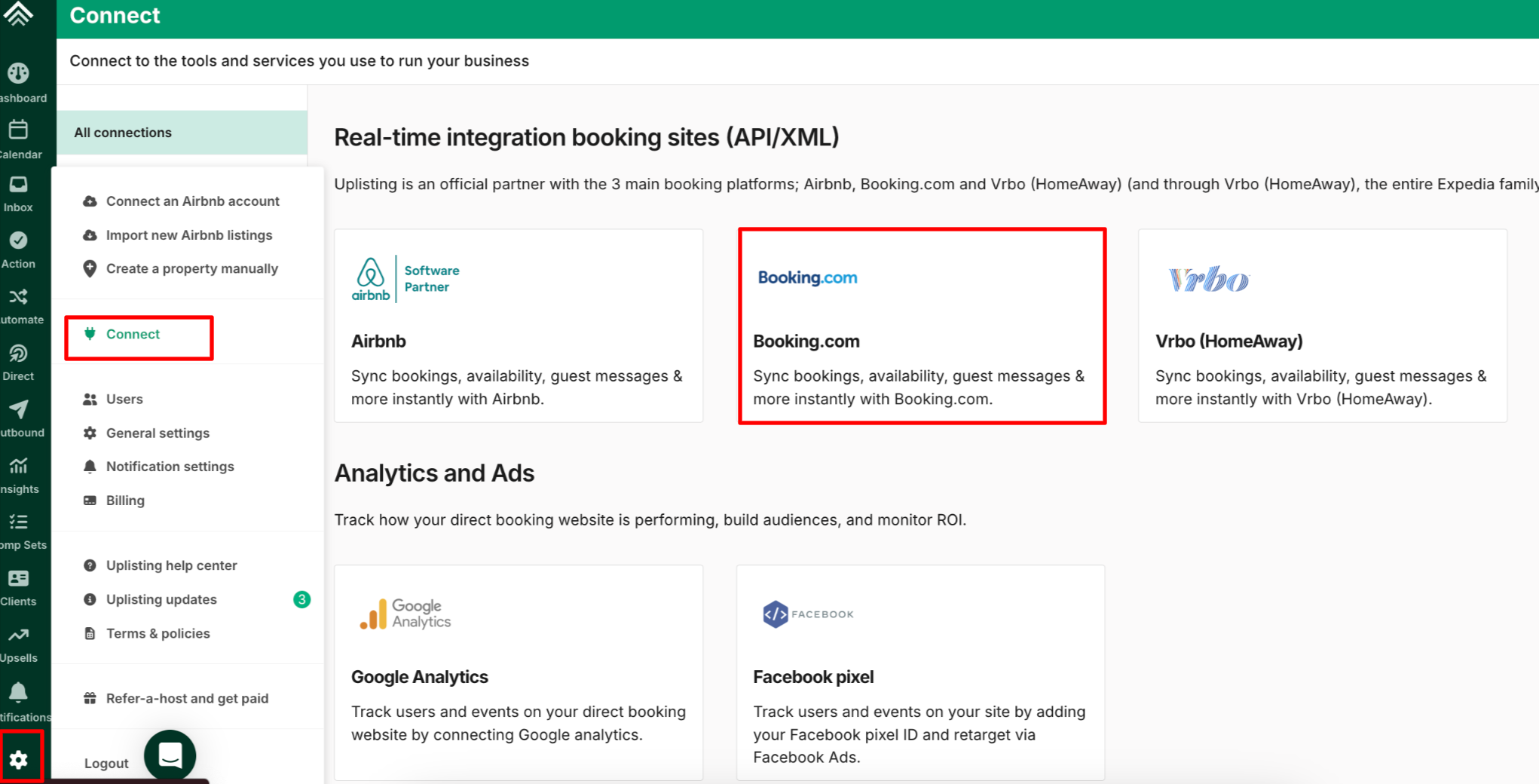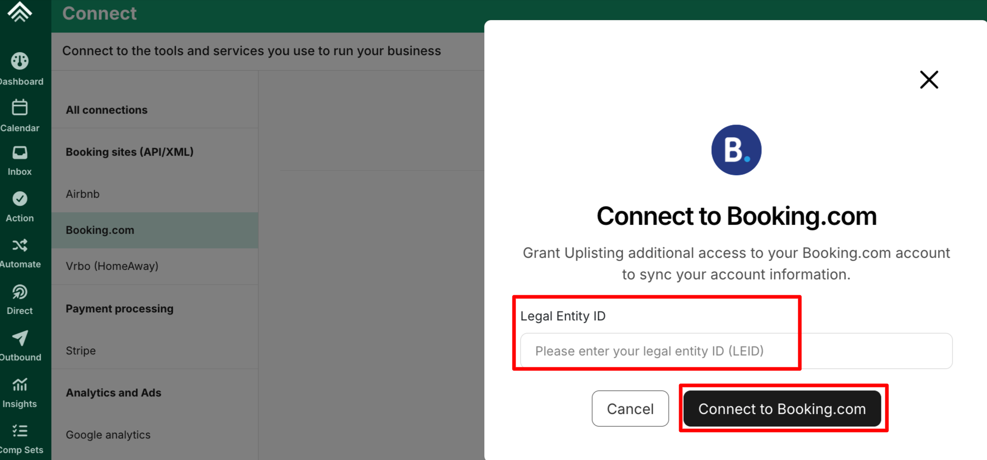 - Connect an existing Uplisting listing to an existing Booking.com account or property