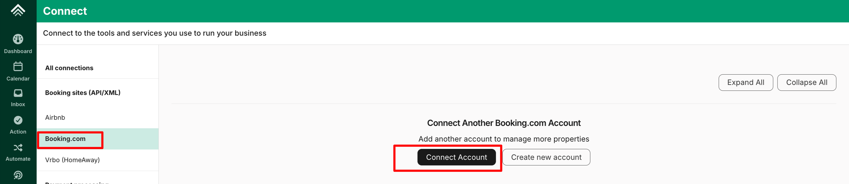 - Connect an existing Booking.com account