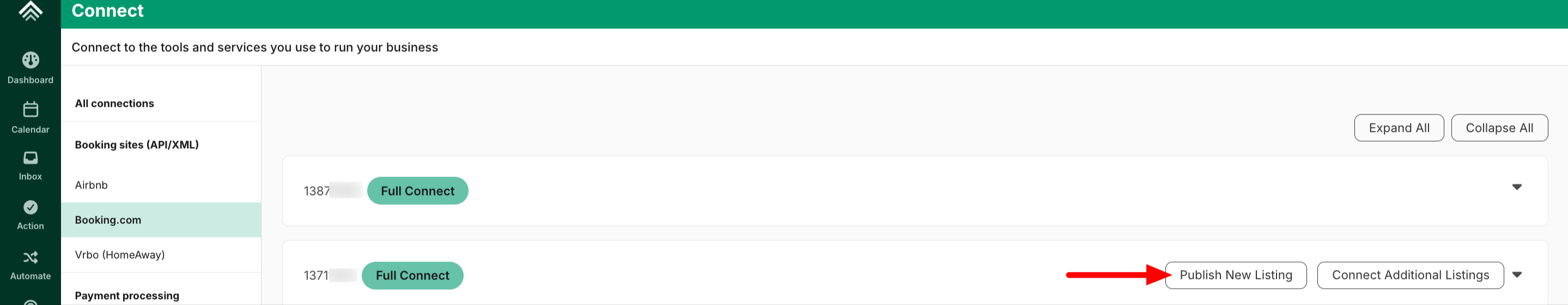 Option 2 - Connect From the Listing's 'Booking Sites' Tab