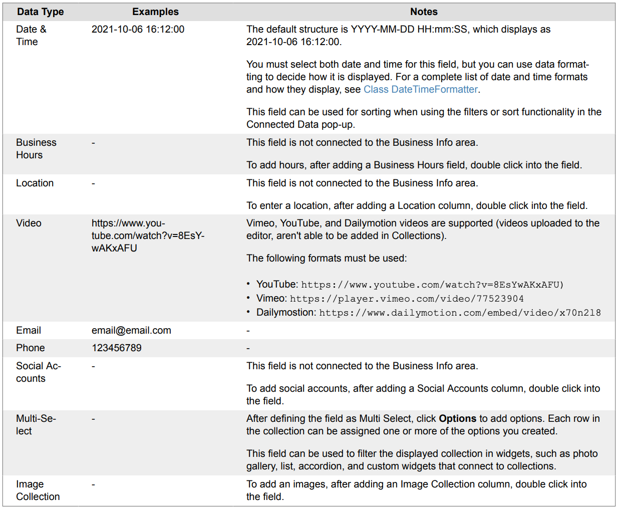 • Use special characters with caution in the Item column as they can cause issues with dynamic pages or widgets connected to the collection.