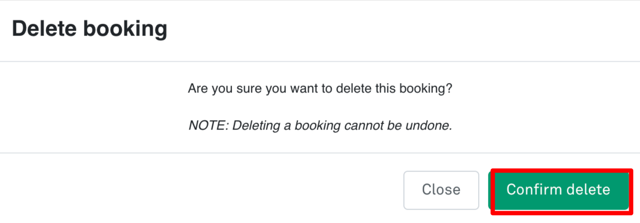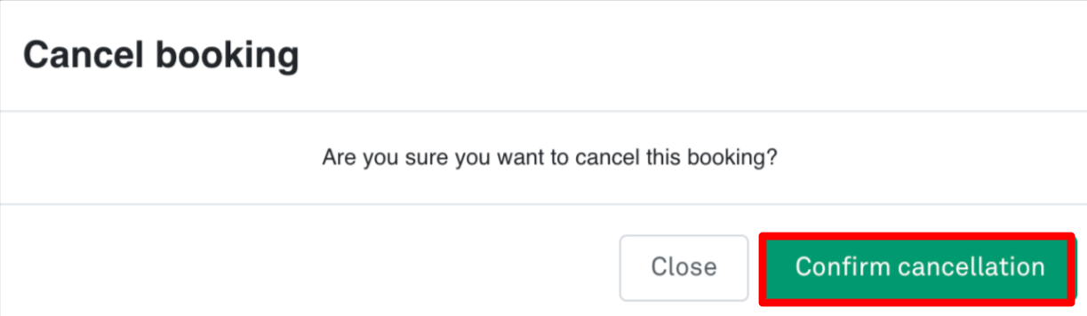 - A confirmation pop-up will appear. Confirm cancellation (or deletion)