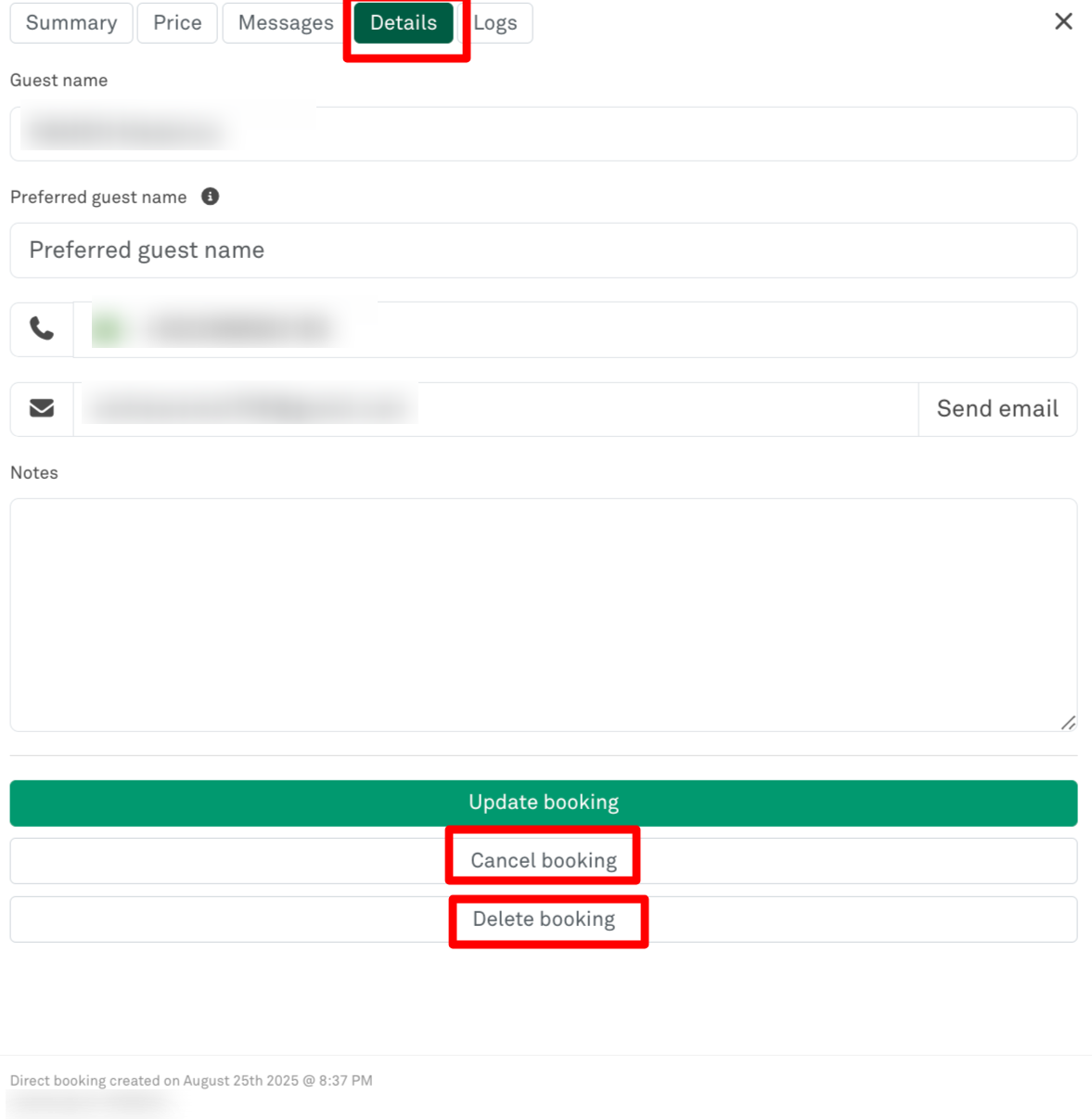 The main difference is that when deleting a booking, it is permanently removed from the Uplisting database. This is most appropriate for bookings made in error.