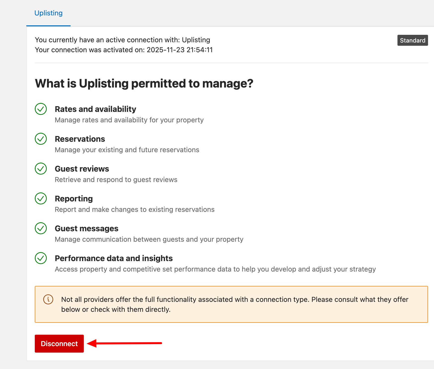 2. Disconnect Uplisting as a Connectivity Provider on Booking.com