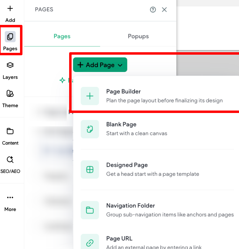 The page builder allows you to plan the layout before finalizing the page’s design.