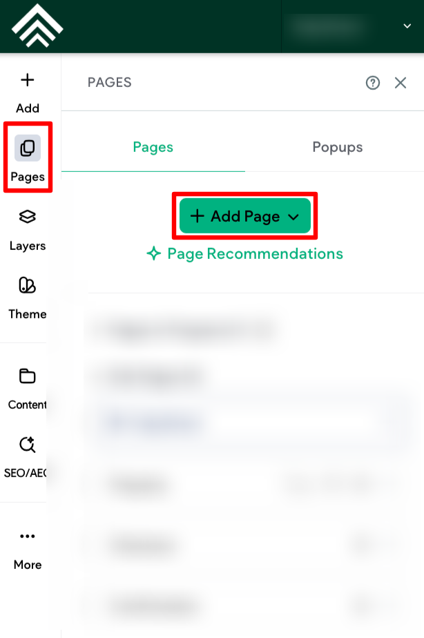Pages allows you to reorder, manage and create new pages in your site. Organize your site's content