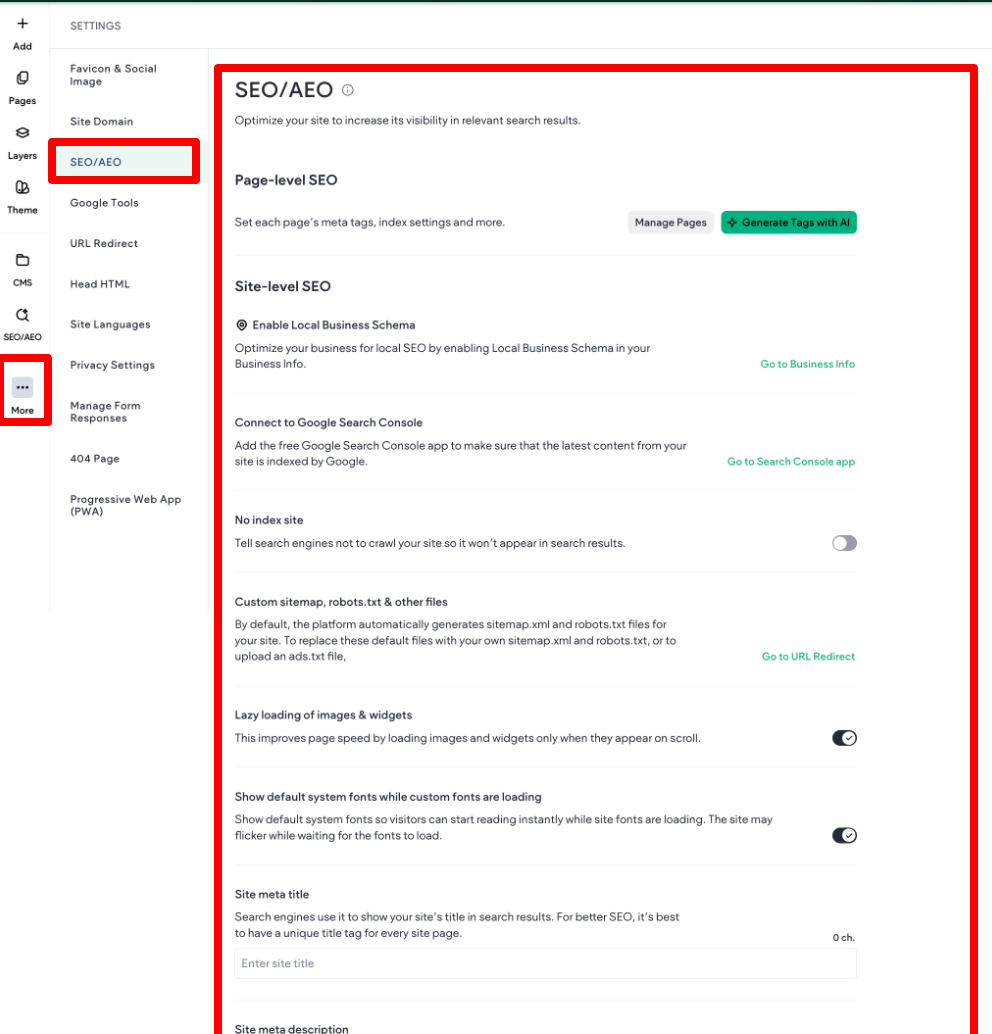 Site SEO/AEO Settings