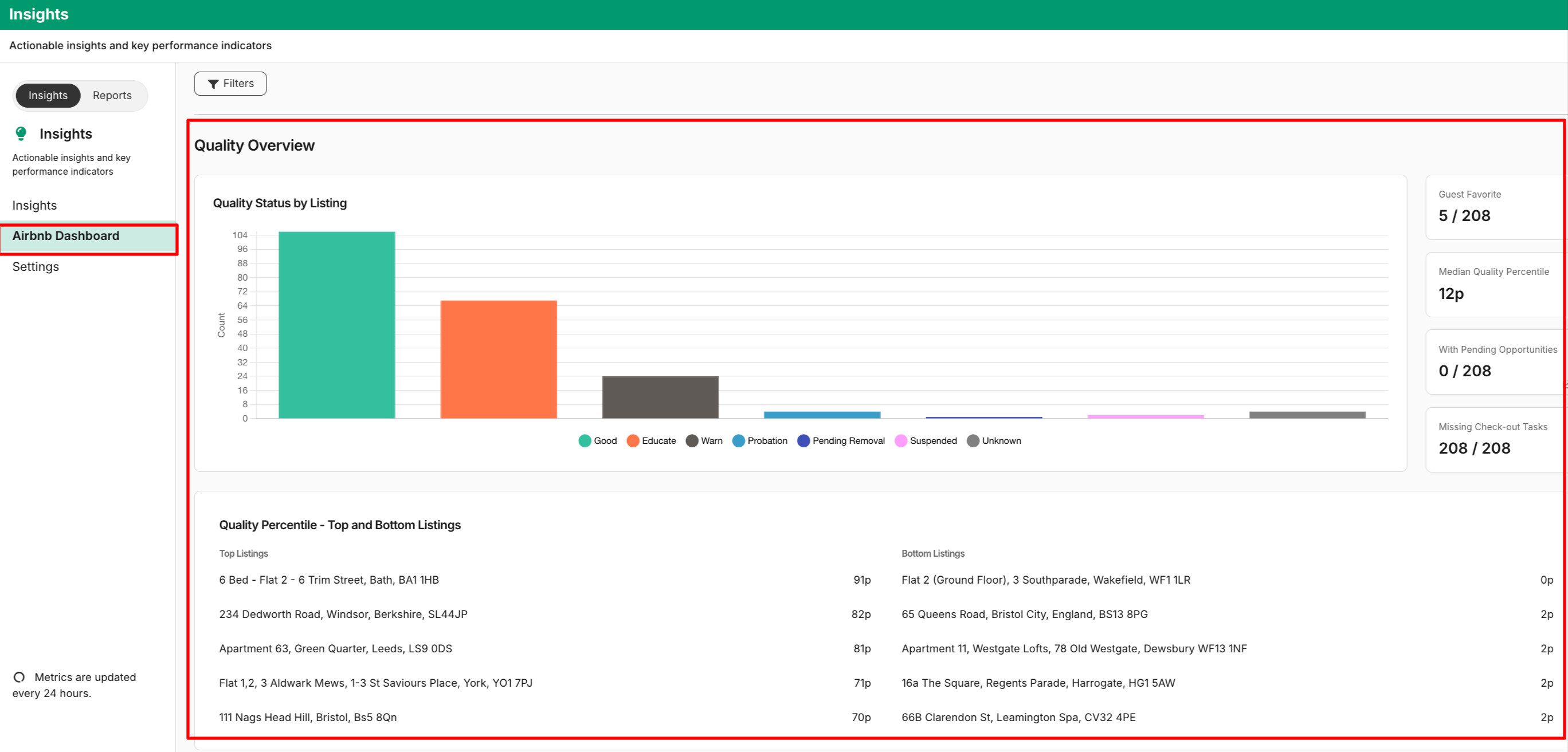 The Quality Overview section gives you a quick, high-level snapshot of how your Airbnb listings are performing. It helps you instantly understand where you stand , and where you can improve.
