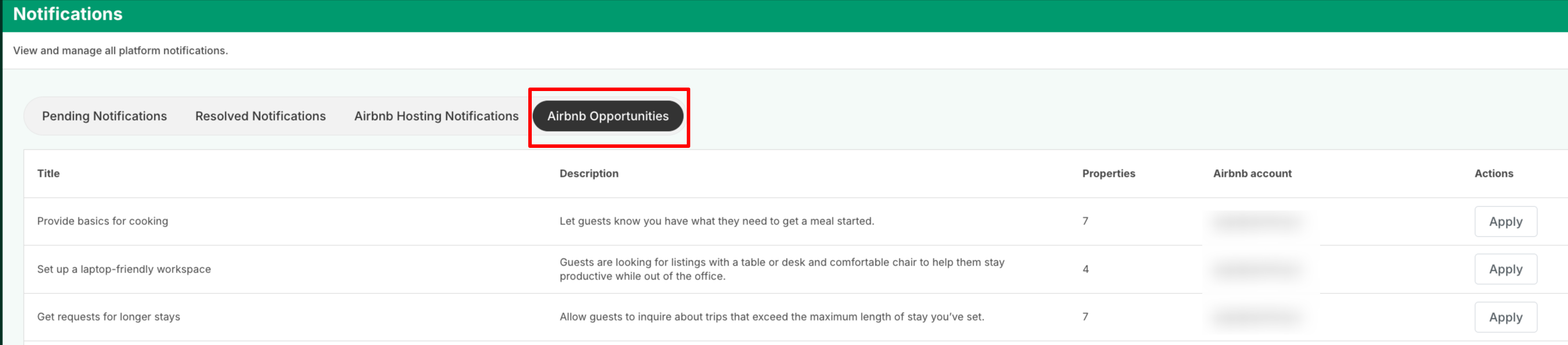Clicking this section will take you directly to the “Airbnb Opportunities” tab within your Uplisting account, where you can review detailed recommendations and take action.