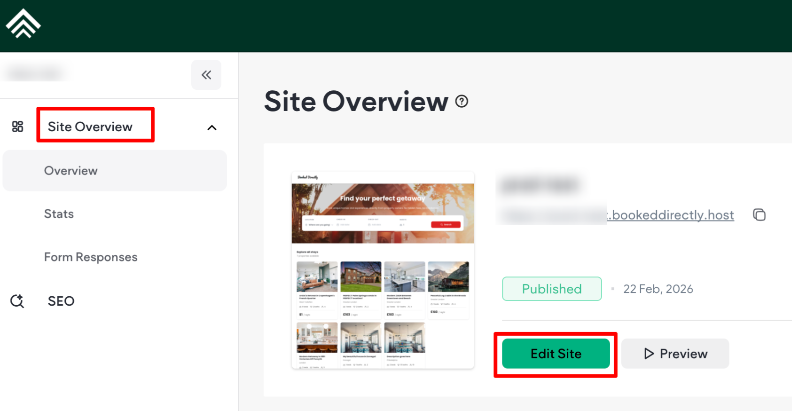 In the side panel, click on Site Overview, then select Edit Site.