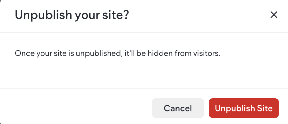 - A pop-up will be displayed asking if you want to unpublish your site. Click Confirm to proceed or Cancel to keep your site published.